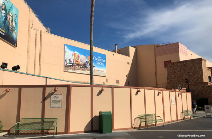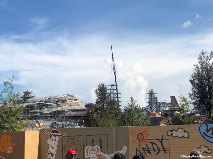 The Joffrey’s stand that has been at the entrance to Pixar Place is still there providing coffee, snacks and energy to tackle Toy Story Land! But, we spotted some new construction walls on the left hand side of the kiosk.