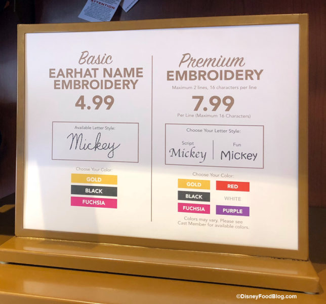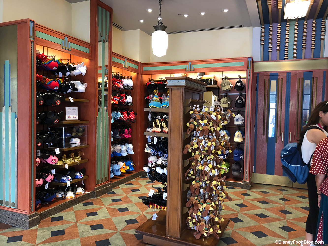 You can still get hats, ear hats, and Minnie ears in the Cover Story Store — also connected to the 5&10. Embroidery of hats and ear hats is also available here.