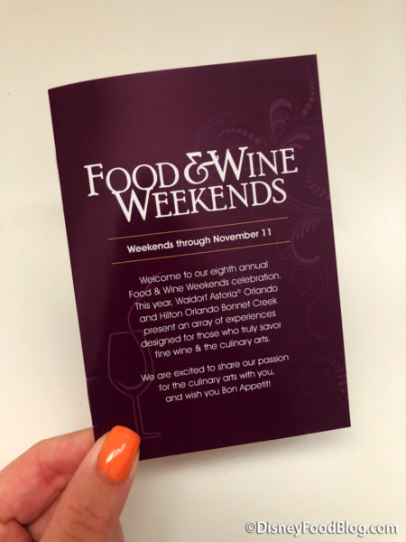 Will you be making plans to attend the Food & Wine Weekends at the Waldorf Astoria Orlando? Let us know in the comments. Disclosure: In nearly all circumstances, Disney Food Blog writers and photographers pay full price for their own travel, hotel, food, beverage, and event tickets. We do this because it’s important to us as journalists to ensure not only that we give you unbiased opinions, but also that you can trust us to do so since we’re paying our own way. On rare occasions, when we are invited by a company to attend a preview as media, and when we choose to accept that invitation, we will always make you, our readers, aware of that situation. Today, we were invited to attend the media preview for the Waldorf Astoria’s Food & Wine Weekends. Note that when we attend events as media we are 1) Not required to review that event/food on any of our channels, and 2) Not required to review that event/food favorably. You can always count on DFB to give you a 100% unbiased and honest review of any event that we attend, food that we eat, or beverage that we drink. You can see more in our Disclosure Policy. Thank you for reading. — AJ