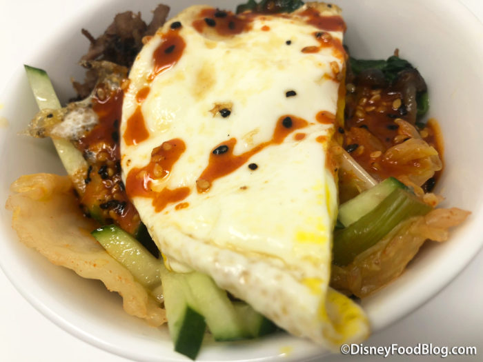 The Short Rib Bibimbap features Short Rib, Fried Egg, Blanched Spinach, Namul, Japanese Rice, and Gochujang Sauce, and was a dish of complex and unique flavors.