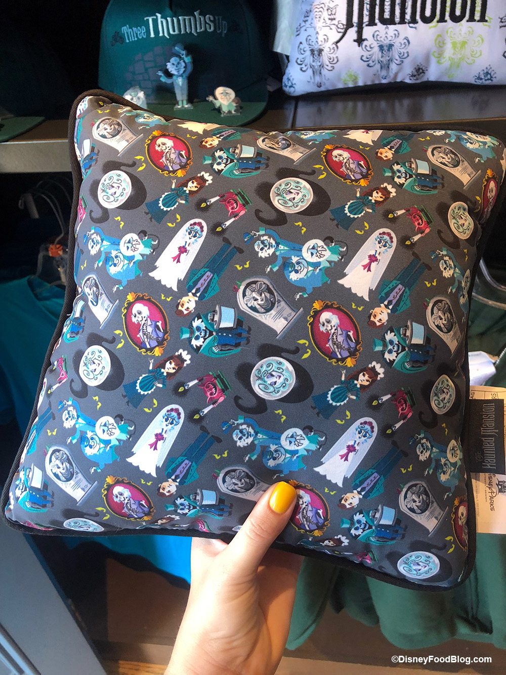 I saw that same pillow at Disney Springs inside the Co-Op, in the little shop full of Haunted Mansion and Nightmare Before Christmas merch.