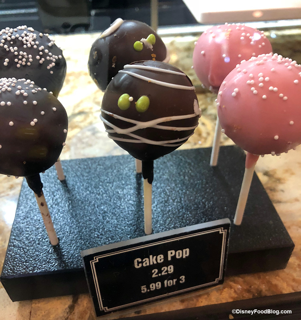 That’s not all that they have added at this location, they also added a fun Halloween Mummy cake pop! This is different from last year’s white mummy with purple eyes…now he’s a chocolate mummy with green eyes! Remember in the summer they had that strawberry cake pop that was smiling at us?