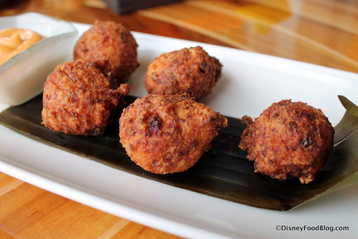 The Conch Fritters have a great breading on them that really help pronounce the conch flavor in these fritters. We would liken them to grown up hush puppies!