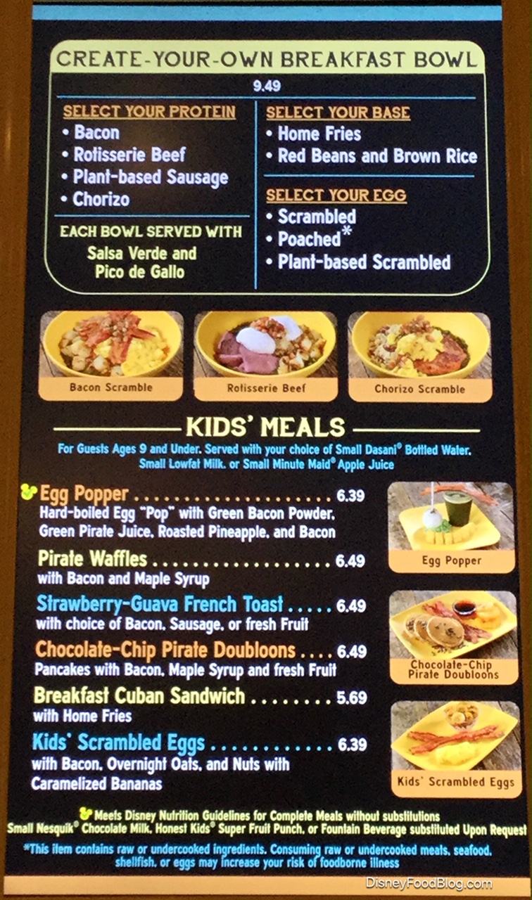 A highlight among the new options are customizable Island Bowls. The guest’s choice of base, protein, and sauce in breakfast as well as lunch and dinner varieties are served in a style reminiscent of the customizable bowls at Satu’li Canteen.