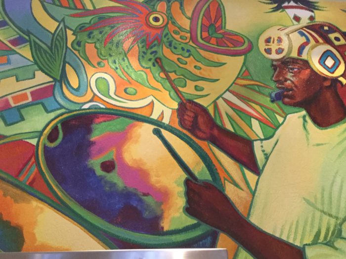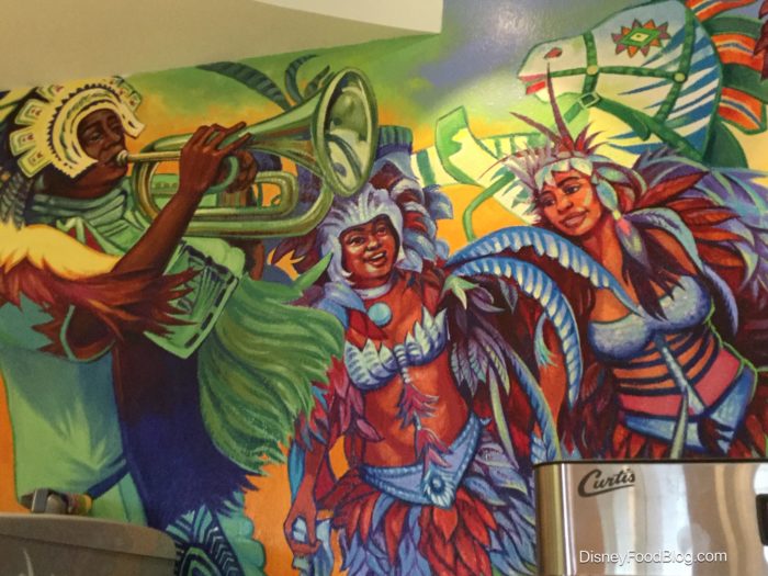 The visual centerpiece of Centertown is a hand-painted mural inspired by the colors, music, and feel of a Caribbean festival. It’s right above the beverage bay.