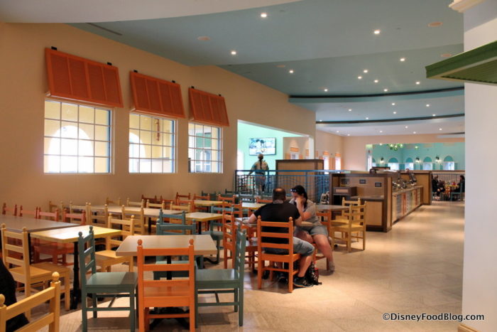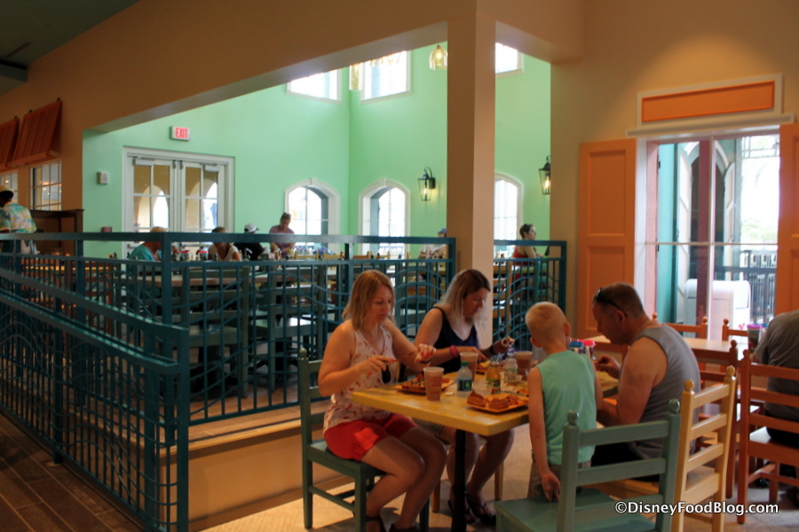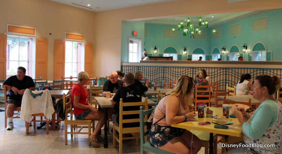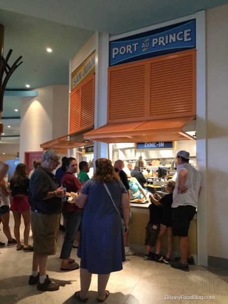 And it’s been a long time coming. The lengthy refurbishment of Caribbean Beach Resort has spanned the hotel’s property, and has happily resulted in a new table service option, Sebastian’s Bistro, and entirely revamped Banana Cabana (along with refurbishments to the Resort outside of dining). And though temporary dining options were put into place, the absence of a central Counter Service option for the Resort’s guests felt like the biggest missing piece during the refurb.