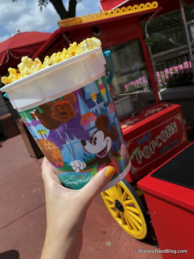The last couple of times we’ve visited the Magic Kingdom we’ve really missed the Popcorn Cart that used to stand outside the Guest Relations area when you enter the park.