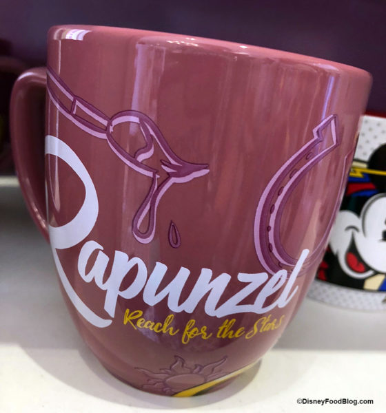 A very determined looking Rapunzel gets a mug as well with her paint brush and Pascal.