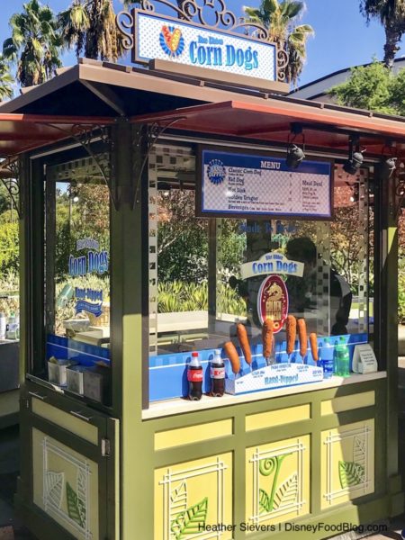 Disneyland Resort’s hand-dipped corn dogs are the stuff of legends. Disney Food Blog’s Disneyland correspondent, Heather, recently stopped by Blue Ribbon Corn Dogs in Downtown Disney to give them a try. Here’s what she thought!