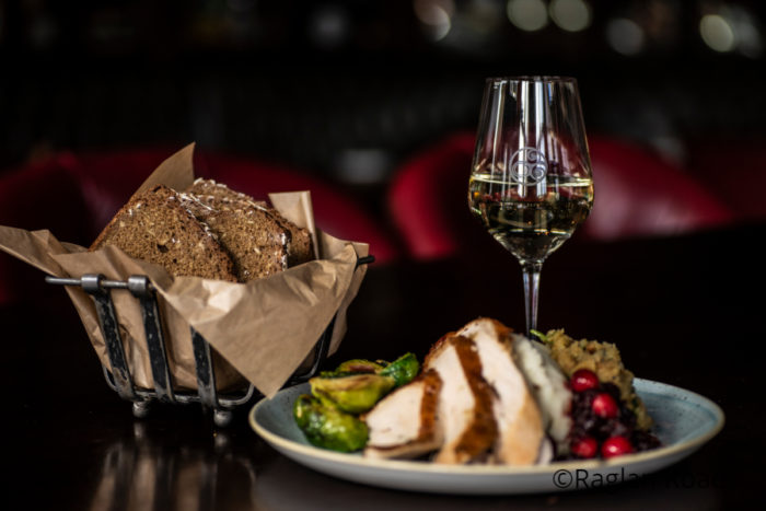You’ll be able to enjoy butter and herb roasted turkey with gravy, duck fat potato roasties, bacon-roasted Brussels sprouts, apple, sage, and sweet onion stuffing, and cranberry and plum chutney.
