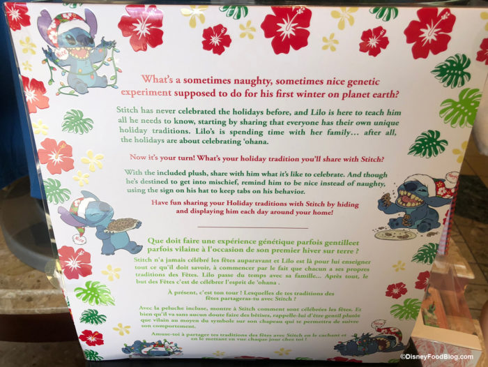 The backstory for this “elf” is this is his first winter on planet earth and he needs to learn your holiday traditions. You are encouraged to share your celebrations with him and make him a part of your family. As it says “…after all, the holidays are all about celebrating ‘ohana.”