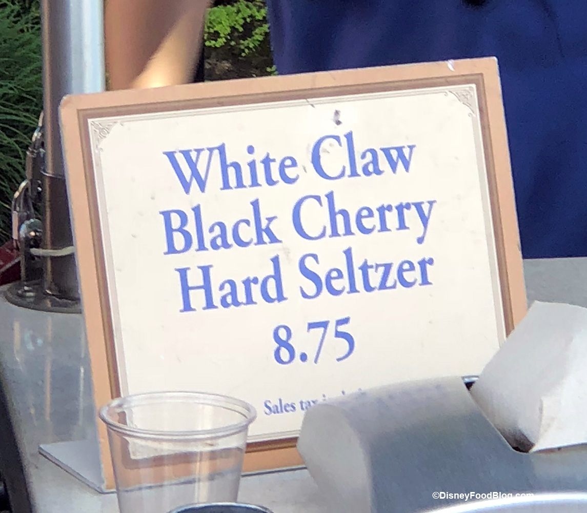 Hard seltzer is the new hard soda! In the American Adventure Pavilion, they have added White Claw Black Cherry Hard Seltzer to the Ice Cream and Beverage Cart in the pavilion.