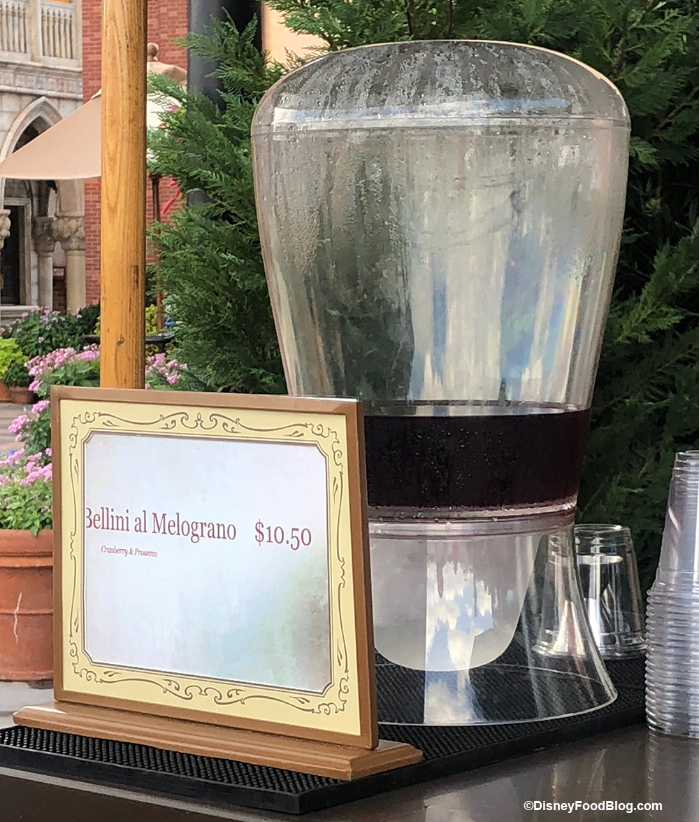 Currently, the specialty drink at the Pop-Up Wine Bar is a Bellini al Melograno.