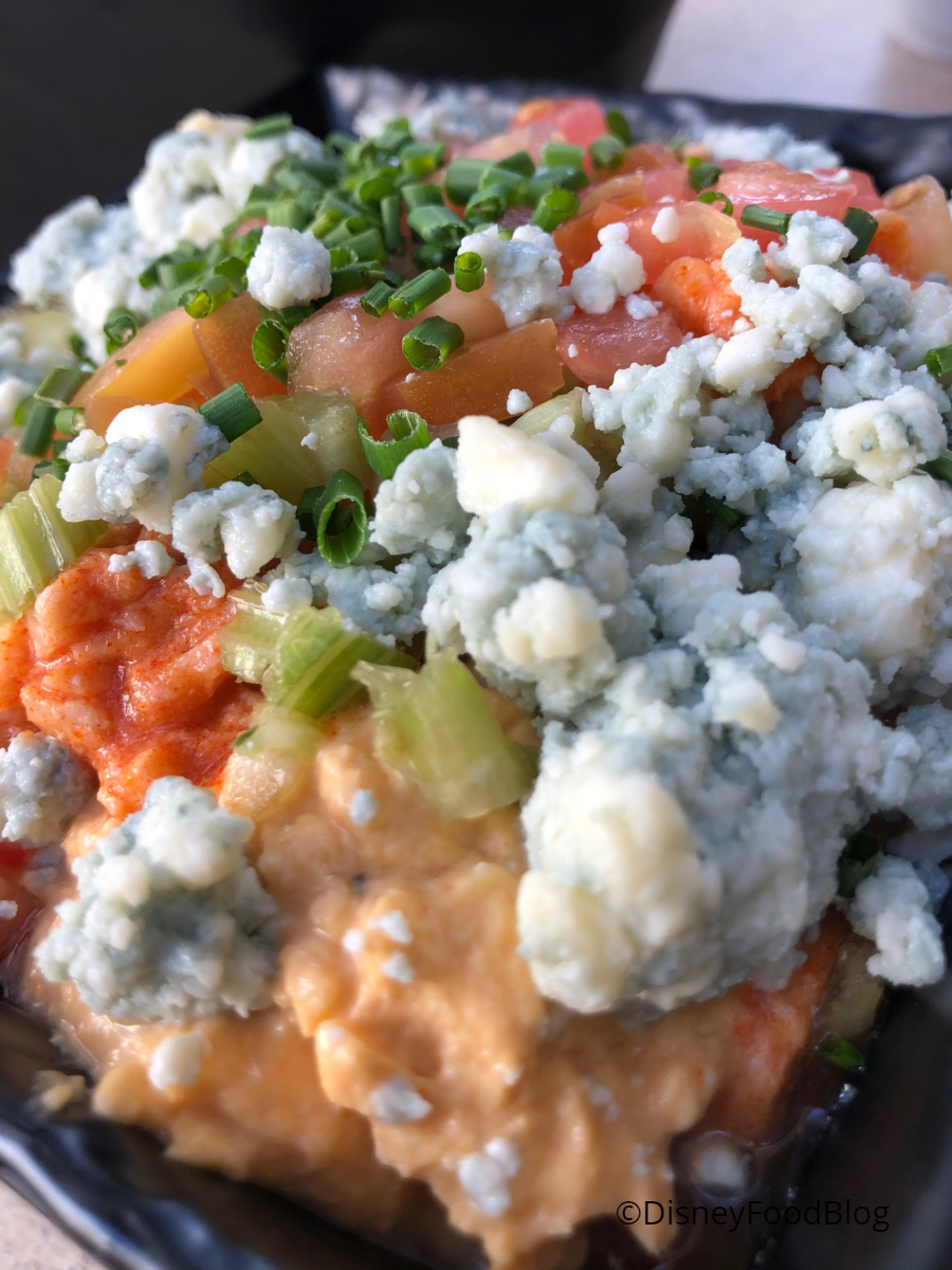 You might recall the Buffalo Chicken Chips we spotted at Trilo-Bites and Dino-Bite Snacks in the past. The Restaurantosaurus Lounge dip is a much larger, deconstructed version. The chips here aren’t seasoned, and the toppings aren’t quite as vibrant.
