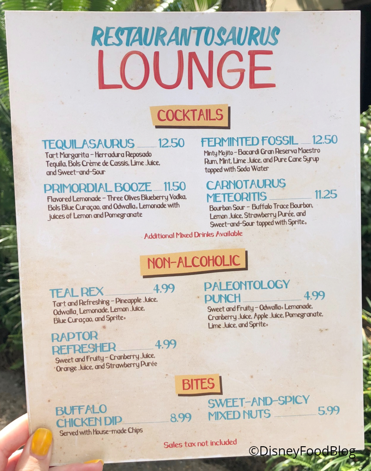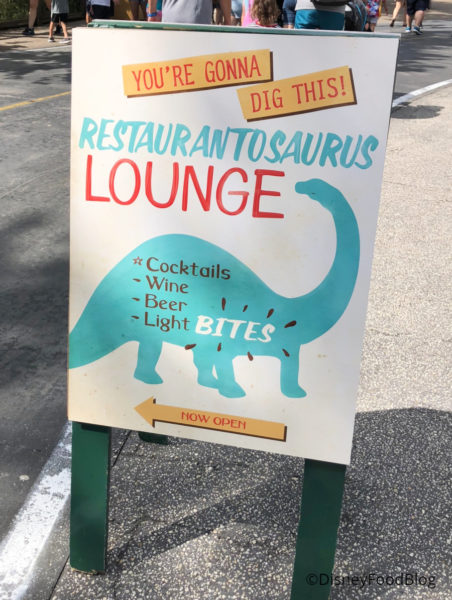 Originally a part-time project, Restaurantosaurus Lounge appears to be a more permanent fixture. Cast members tell us that the spot, located in one of the Restaurantosaurus dining rooms, is opening earlier in the day now. On the day of our visit, they were ready to open the doors by noon (but that may vary from day to day, until earlier hours are official).