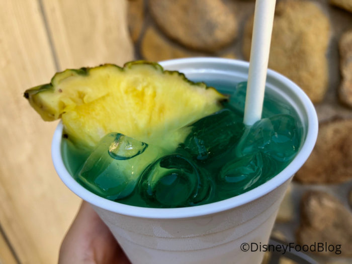 The Teal Rex is a mocktail that’s tart and heavy on the pineapple. In addition to the prominent pineapple juice, the Teal Rex (which is a GORgeous color!) also contains Odwalla lemonade, lemon juice, Sprite, and non-alcoholic blue curacao.