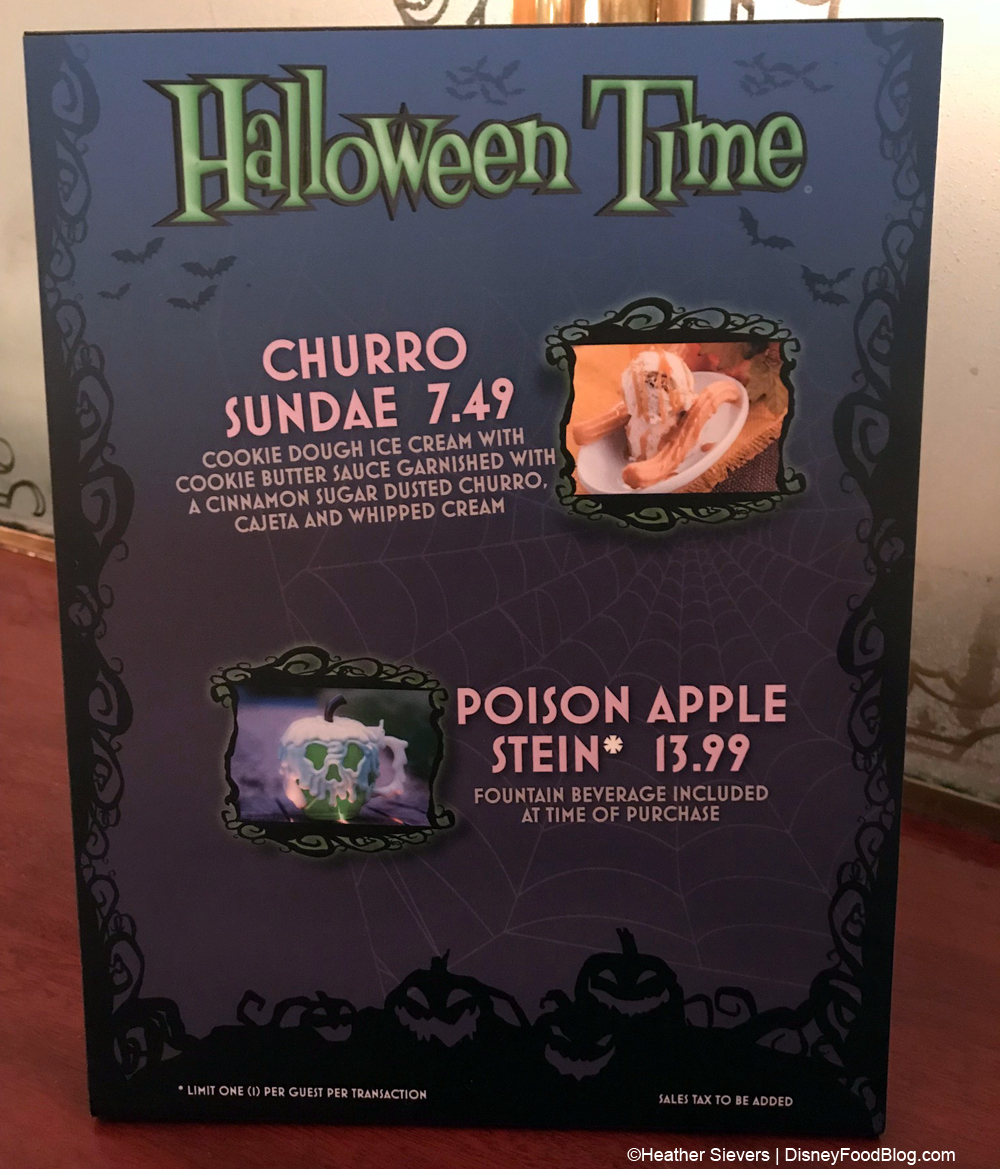 The Golden Horseshoe is offering a Churro Sundae and is home to the Poison Apple Stein this season!