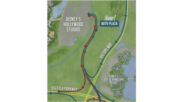(The current main entrance — off World Drive and Osceola Parkway — is being repurposed for Cast Members only, and the satellite entrance on Buena Vista Drive will be used for buses.) Drivers coming from southbound Victory Way will also have access to a connecting road. Directional signs around property will be updated accordingly for easy navigation to the new parking lot.