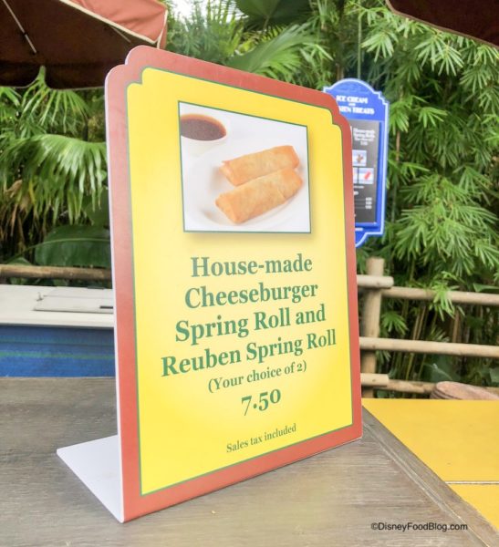 The cult favorite Spring Roll cart near the Enchanted Tiki Room in Adventureland is currently only serving the Cheeseburger Spring Rolls and Reuben Spring Rolls. The veggie flavor is not available at the moment.