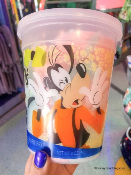 Earlier this month, we told you about the cute new packaging for Goofy’s Candy Company sweets. The tubs of Goofy’s Cotton Candy now feature the new design, too!