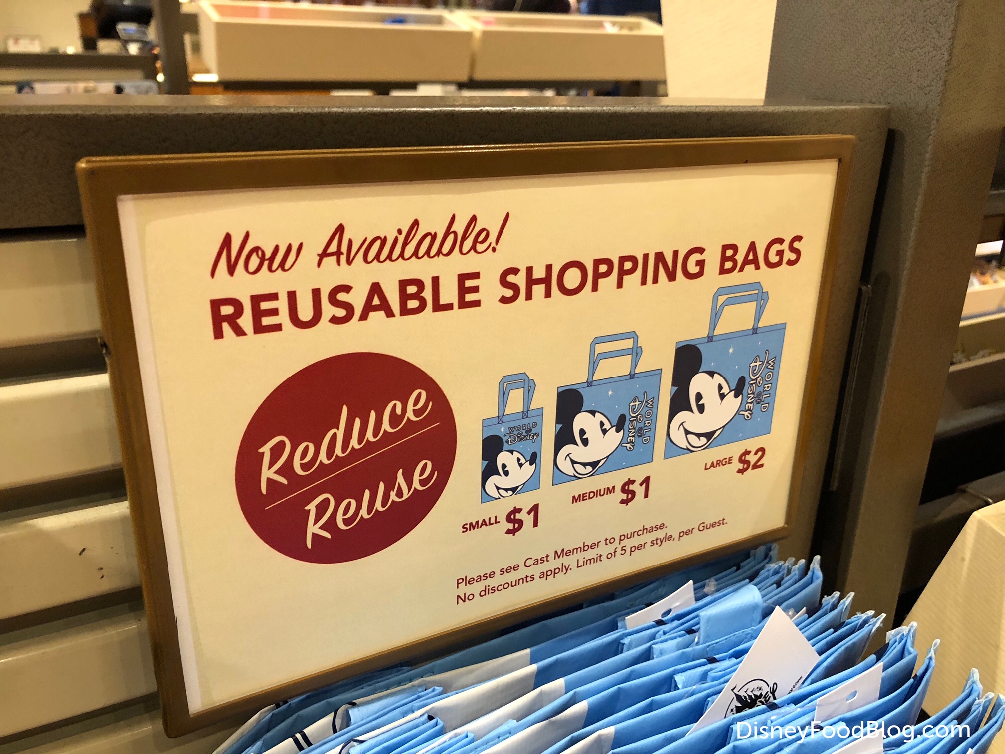 Free plastic bags are still available at World of Disney, but honestly, we think of these reusable bags as a functional souvenir, so we’re happy they’re available!