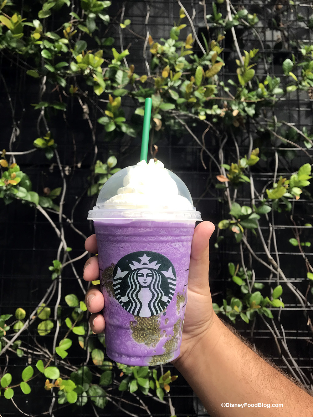 While we were in Disney Springs celebrating the re-opening of the World of Disney store, and finding attraction spirit jerseys we stopped at Starbucks to try out their limited-time Witch’s Brew Crème Frappuccino.