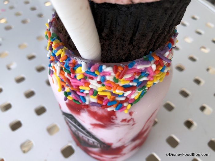 The Mickey Confetti Vanilla Shake is packed to the plastic souvenir cup’s brim (yes, you get to keep it!) with rich vanilla ice creamy goodness.