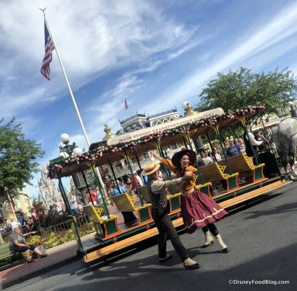 There are, by the way, a few signs of autumn left. (Notice the fall colors on the citizens costumes for the Main Street Trolley Show 🙂 !)
