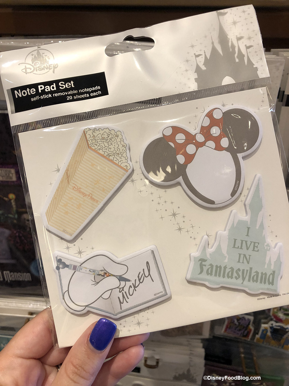Of course, the first item we were drawn to was the Disney Snacks sticky notes — this is perfect for notes for the kiddos in their lunches, or makes everyday work reminders a little more fun.