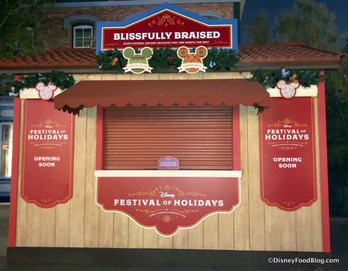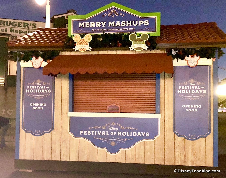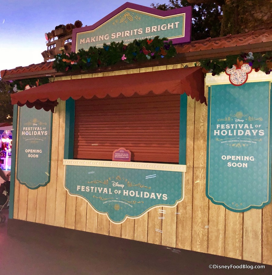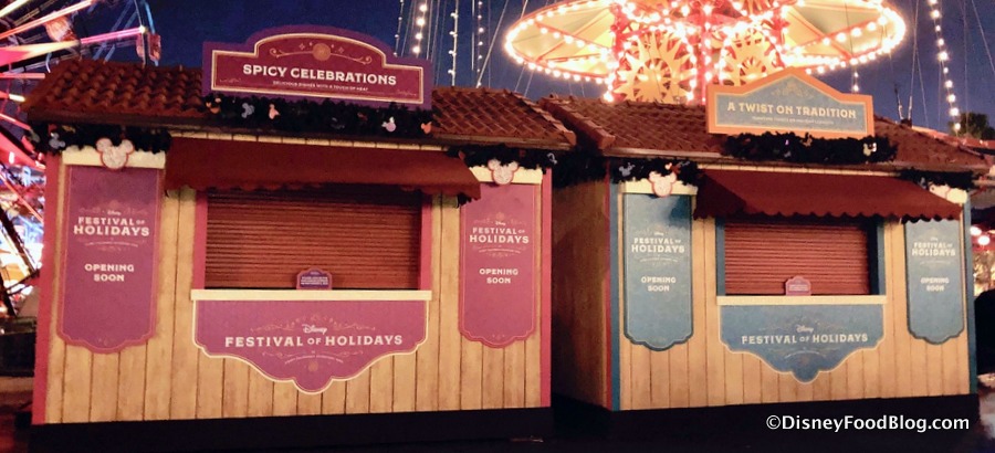 We can’t wait for the Festival of Holidays at Disney California Adventure to kick off on November 9th at Disneyland Resort! We’ll be there for all the festive fun and festive FOOD! But we’re not the only ones getting ready, because lots of the BOOTHS are now in place for Disney’s Festival of Holidays!
