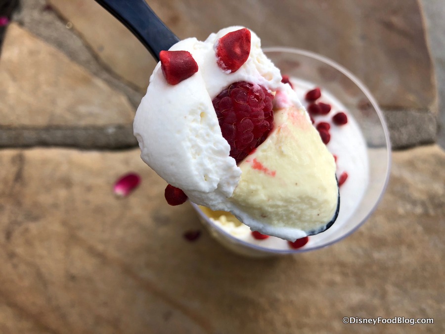 The Eggnog Panna Cotta consists of sweet eggnog cream topped with raspberries and vanilla cream. So cute! So festive! But how did it taste?