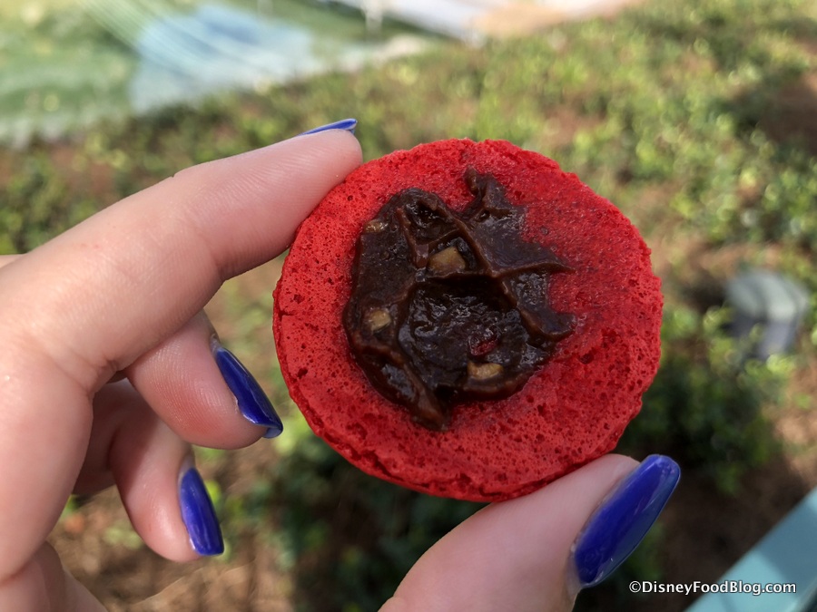 The Santa Macarons are bright red — just like Santa’s coat — and the center is a chocolate cream with nuts. The pack of five Santa Macarons is $7.99.
