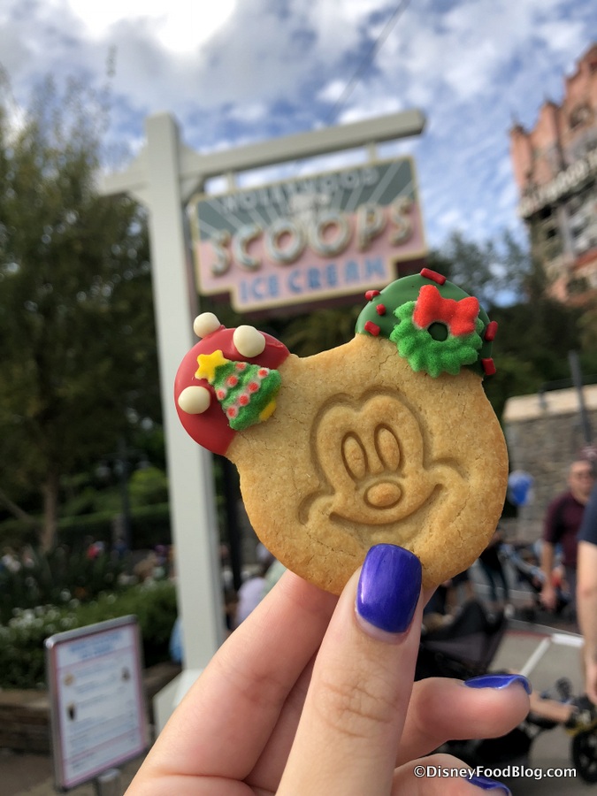 The Shortbread Cookies are Santa Mickey-shaped, and enhanced with chocolate ears!
