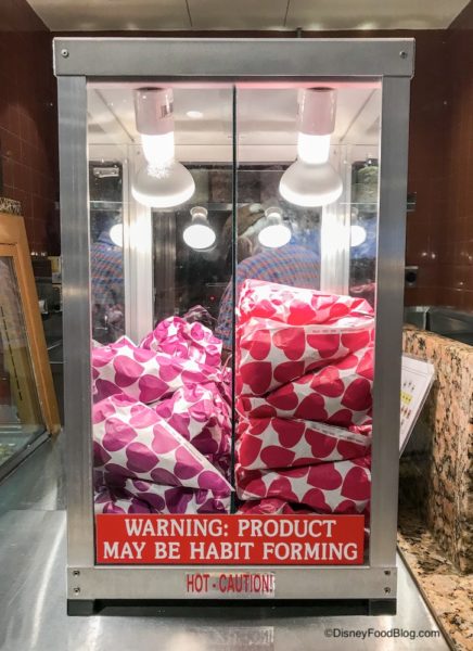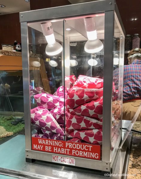 Geyser Point, the Wilderness Lodge’s outdoor quick service restaurant, is also offering Cinnamon Glazed Almonds and Pecans! See ’em up there on the counter? We 10/10 recommend picking up a package and taking a stroll along Bay Lake at sunset.