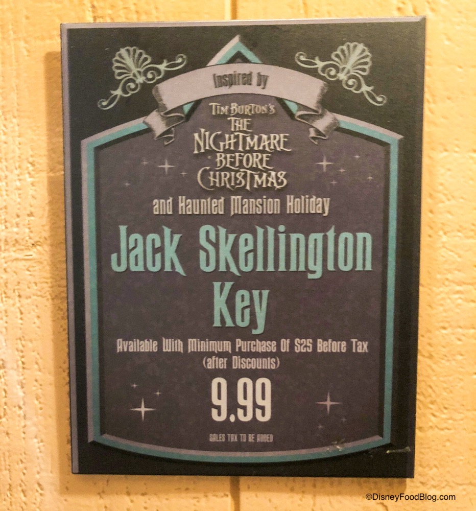 Need your own Jack Skellington Key? Find it at Harbour Galley across from Haunted Mansion Holiday at Disneyland. If your purchase equals a minimum of $25 before tax, you can add the key for $9.99. No word on exactly how long the key will be available, but we won’t be surprised if it disappears right after Sandy Claws makes his rounds.