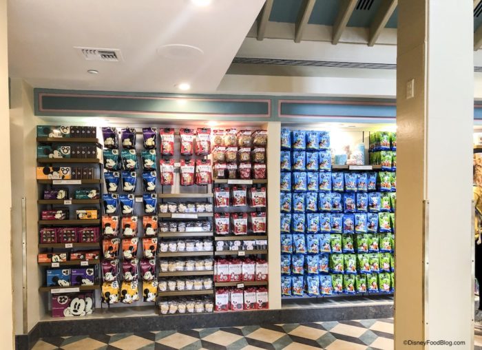 Behold! An entire wall of sweets from Disney Chocolate Favorites, Minnie’s Bake Shop, and Goofy’s Candy Company.