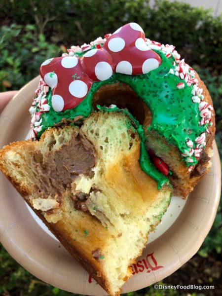 On my visit I had to grab the Minnie Wreath Donut. Like most seasonal donuts you’ll find at Schmoozies, it’s like a little art piece!