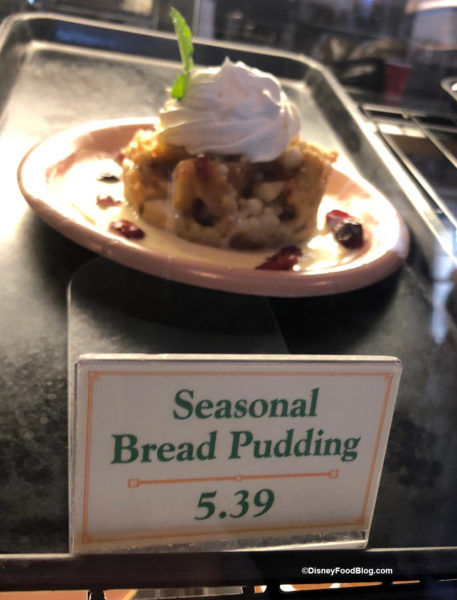 The Seasonal Bread Pudding is a Cranberry Bread Pudding. It is topped with a butter crumble, whipped cream and an orange white chocolate sauce. Pair this with the Turkey soup and you’ve basically had a very delicious version of Thanksgiving dinner!