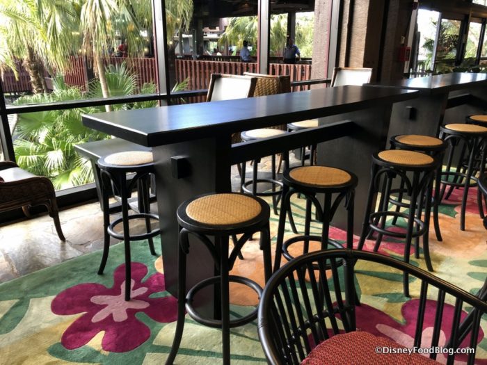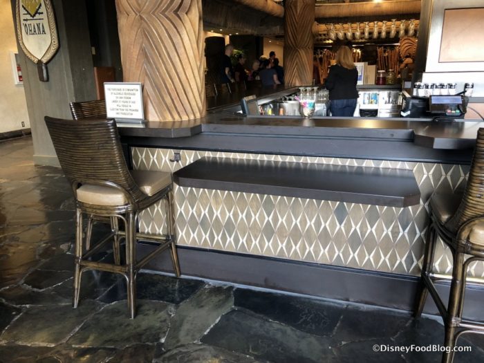 And something else you’ll notice nearby… remember those two temporary bars that were serving guests while Tambu Lounge was being refurbished? One has already been dismantled. However, the temporary bar next to the monorail entrance and exit doors is still standing.