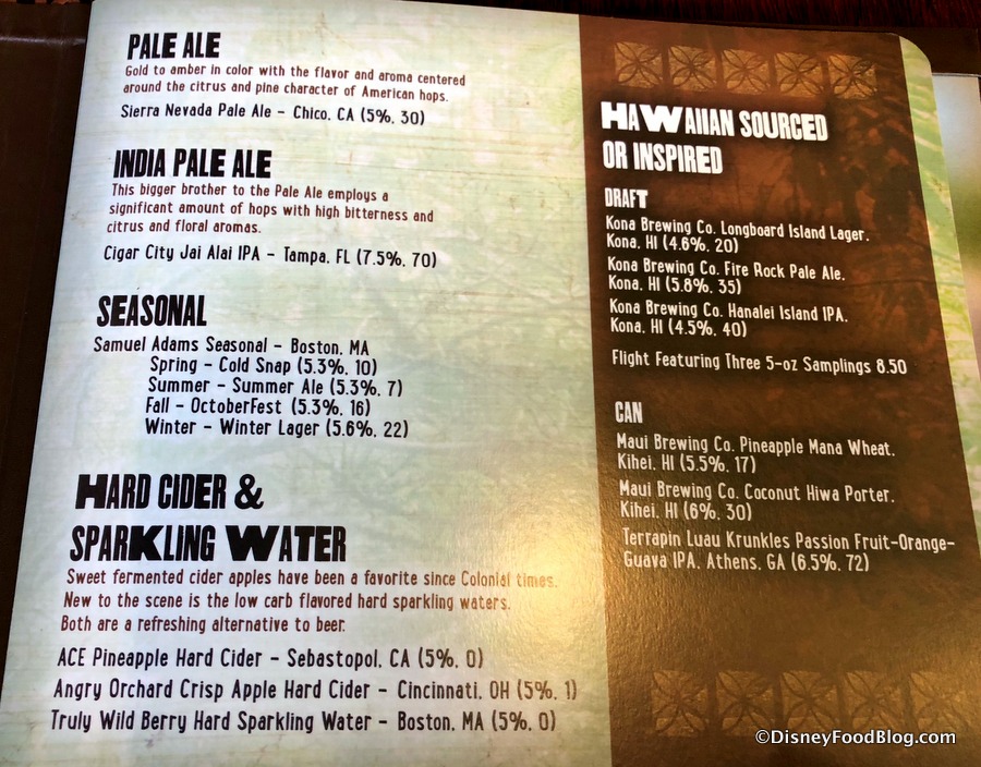 And here’s a look at the Beer, Wine, and Hard Cider listings.