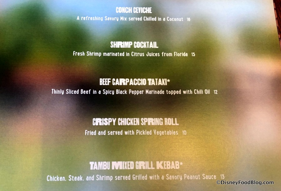 Something important to note is that our trip to Tambu Lounge took place this morning as the space was preparing to officially reopen after finishing touches were complete. The menu picture you’ll see below reflects the Small Bites that will typically be available from 11:00 AM to 2:00 PM. These include a Shrimp Cocktail and Tambu Mixed Grill Kebab.
