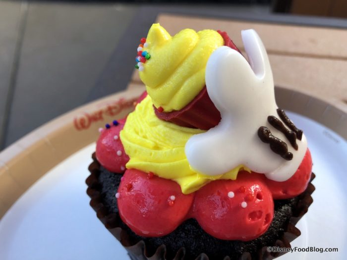 Aside from that, the cupcake is fairly basic, flavor-wise, while boldly showing off Mickey’s vivid colors… AND his penchant for sweet birthday treats!
