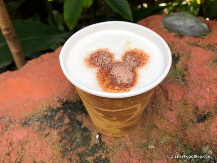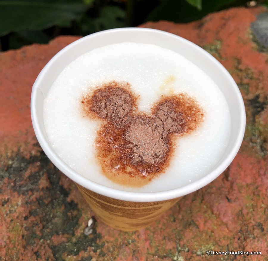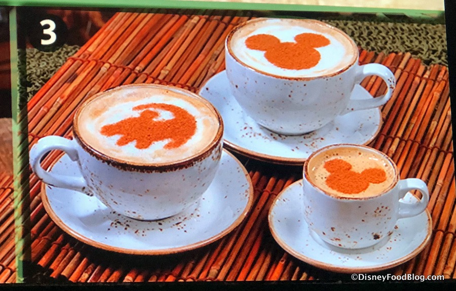 Your character choices are Simba and Mickey to top select coffee beverages, with a choice of topping as well: cinnamon or cocoa powder.
