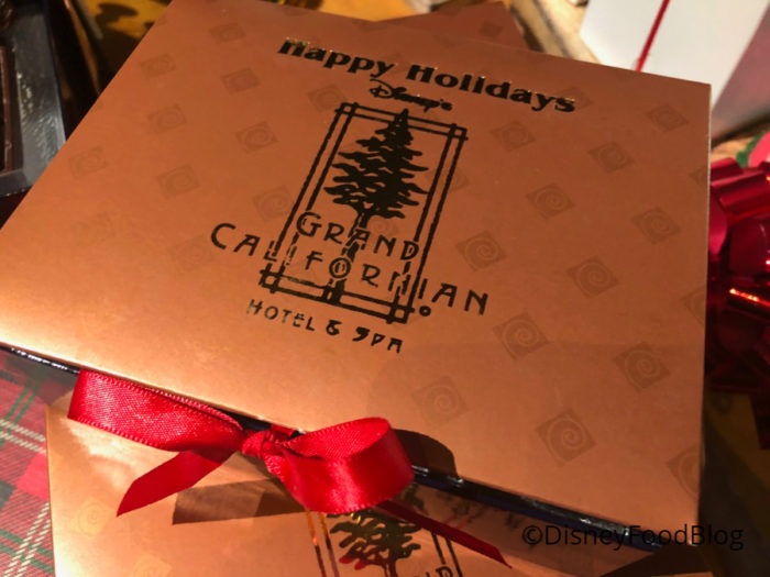 The Grand Californian Holiday Treats stop also offers two items that would be fantastic souvenirs, gifts, or treats for the holiday table. The Holiday Cookie Box contains a selection of beautiful cookies.
