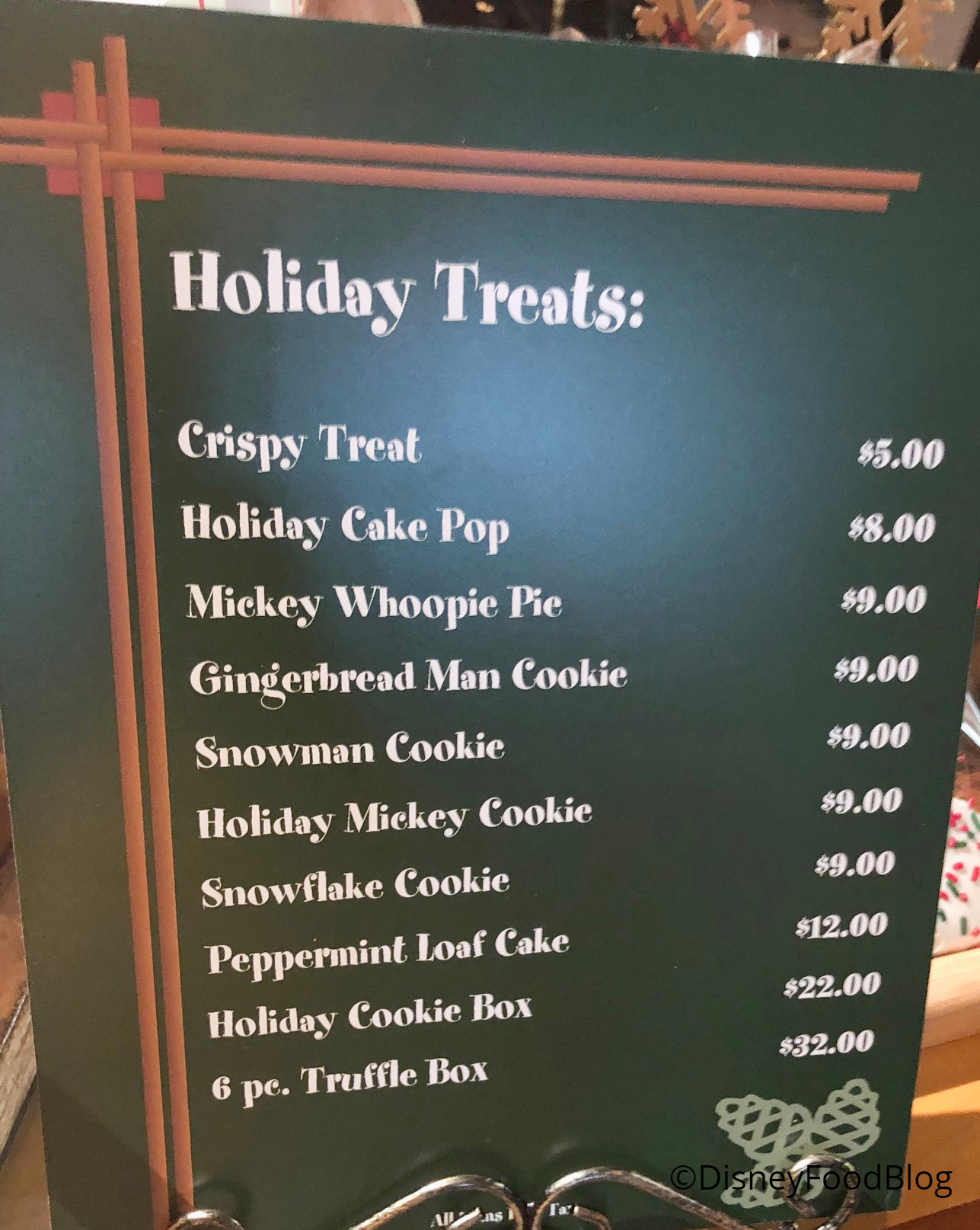 The pastry chefs at the Grand Californian aren’t messing around with their holiday offerings; the list of treats is small but mighty! You’ll find classic gingerbread alongside whoopie pies and truffles. Yup: there’s something for everyone!
