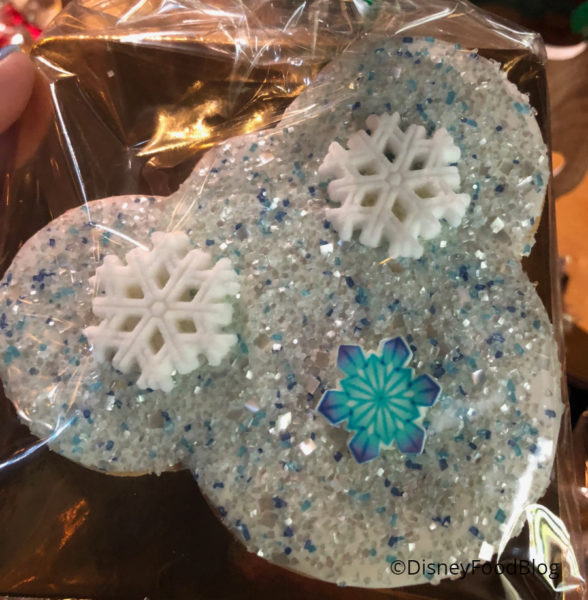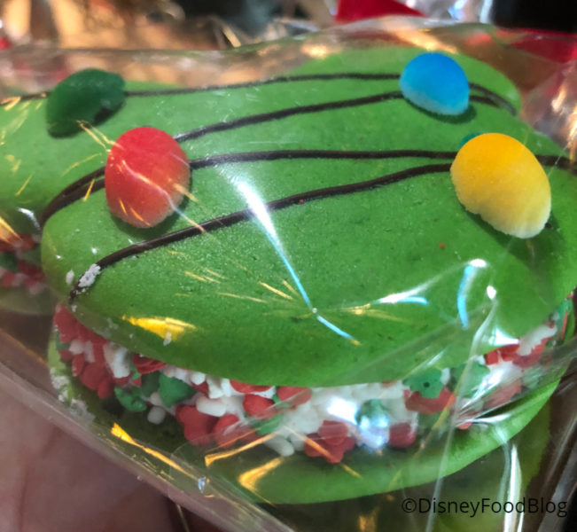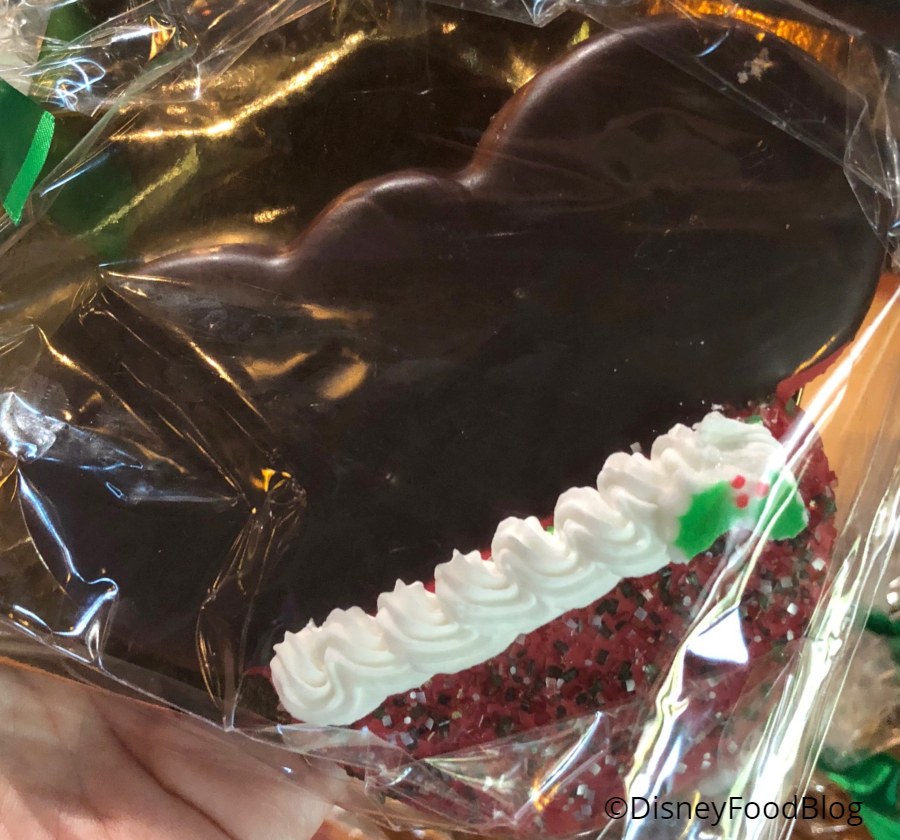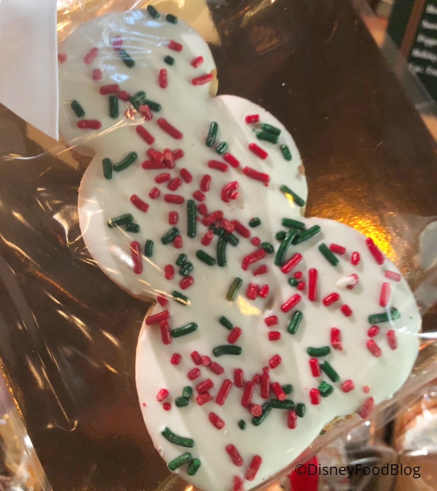 The Mickey Holiday Cookie is another cute option. He’s got chocolate-dipped ears, red icing, festive sprinkles, and a swirl of frosting that sort of mimics the edge of Santa’s hat.