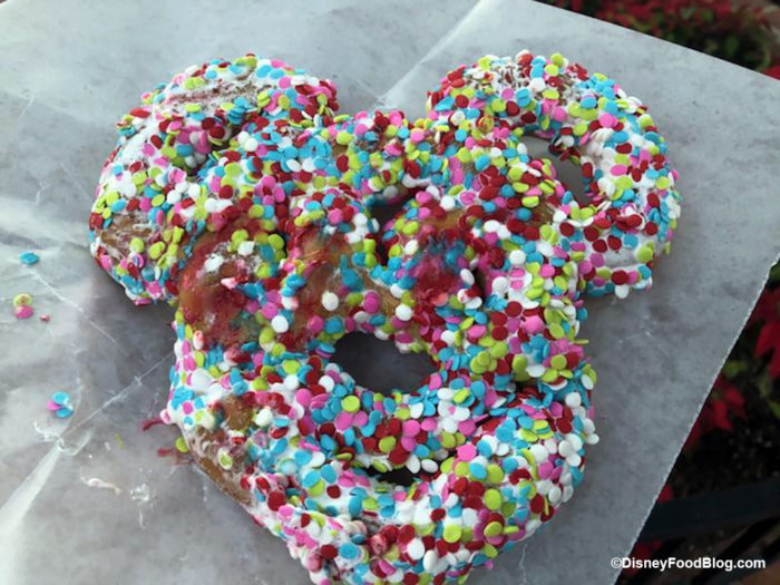 This is the classic Mickey Pretzel dipped in Marshmallow Fluff and Topped with fun Confetti Sprinkles! It looks as fun as it sounds!