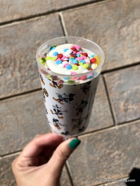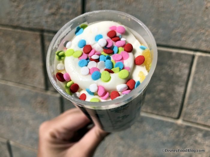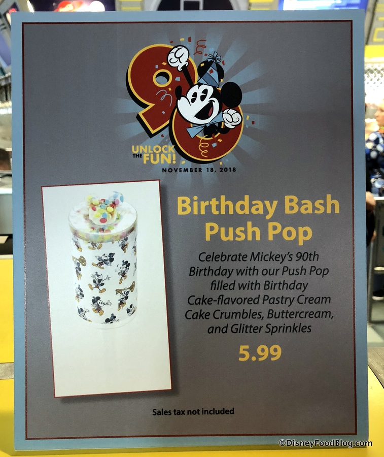 You’ll find the Birthday Bash Push Pop at Cosmic Ray’s Starlight Café, Pinocchio Village Haus, Pecos Bill Tall Tale Inn & Café, and Columbia Harbour House.