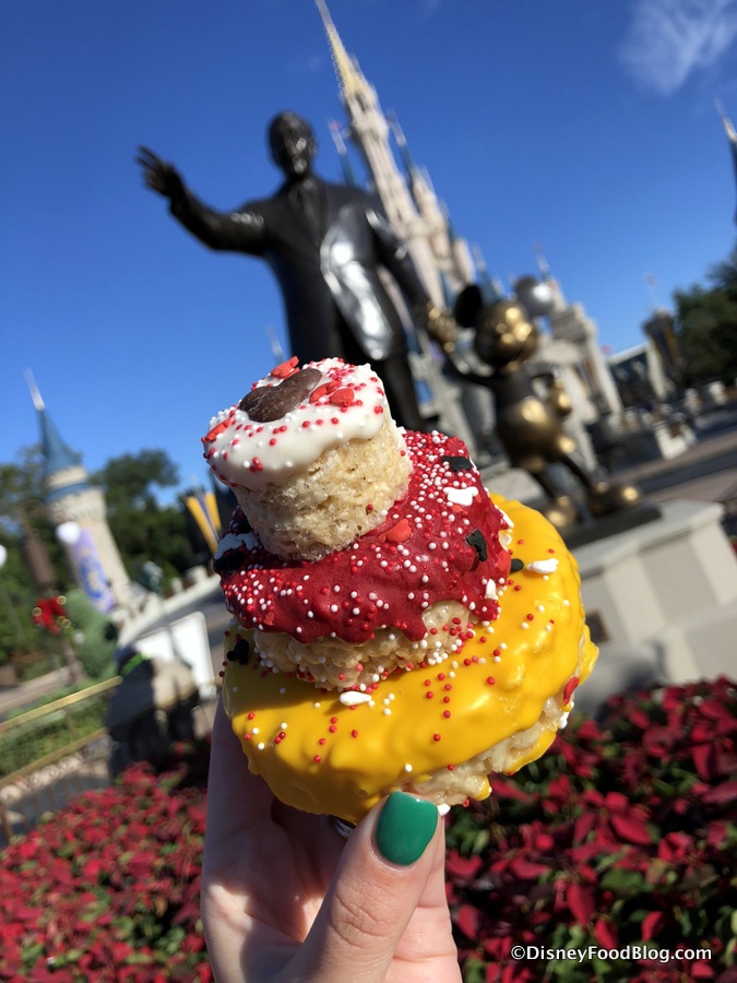 For instance… the WORLD’S LARGEST MICKEY-KRISPY-TREAT-ON-A-STICK is as big as Cinderella Castle!
