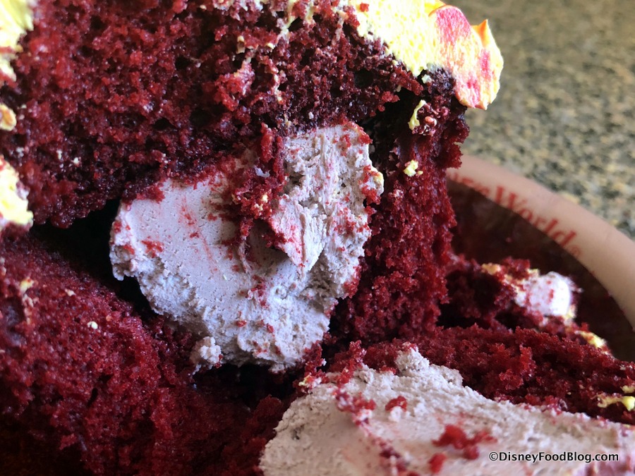 This is where you’ll find Mickey’s Birthday Cake Cupcake! And if “Birthday Cake Cupcake” sounds redundant, it’s actually a thoughtful choice of a name. That’s because this red velvet cupcake is further topped with a MINI BIRTHDAY CAKE!